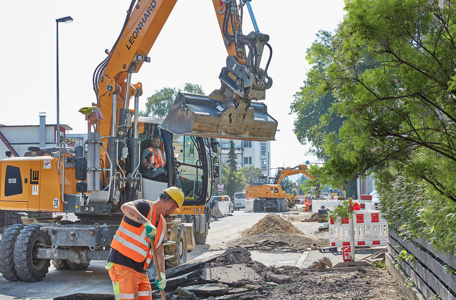 Drei Jahre lang wirst Du abwechselnd bei LEONHARD WEISS und in der Berufsschule sein – zumeist im Blockunterricht. An Deinen Praxistagen leiten Dich erfahrene Kollegen auf unseren Azubi-Maschinen an, so dass Du schon nach einer kurzen Einarbeitungsphase selbstständig auf den spannenden Baustellen mitarbeiten kannst. Auch als Azubi wirst Du aktiv dazu beitragen, dass neue Bauprojekte von Tag zu Tag weiter heranwachsen. Bevor Du richtig in Deine Tätigkeit starten kannst, werden wir Dich im Umgang mit Baugeräten mit umfangreichen Sicherheitsvorkehrungen vertraut machen – von der Absicherung des Arbeitsortes bis hin zum Tragen von Schutzkleidung. Dann kanns bald losgehen!