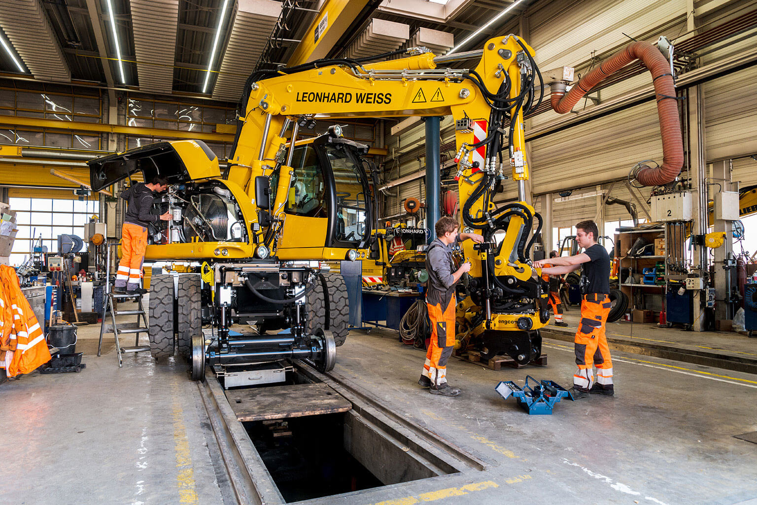 Dreieinhalb Jahre lang wirst Du abwechselnd bei LEONHARD WEISS und in der Berufsschule sein – zumeist im Blockunterreicht. In unserer Werkstatt wird es auch nie langweilig, weil hier eine Vielzahl verschiedenster Maschinen und Geräte warten, um wieder auf Vordermann gebracht zu werden, die dann im Ingenieurbau, im Straßenbau oder im Gleisbau zum Einsatz kommen. Du hältst Fahrzeuge, Maschinen und Anlagen instand und erstellst Fehler- und Störungsdiagnosen in mechanischen, hydraulischen, elektrischen und elektronischen Systemen; außerdem ermittelst Du Störungsursachen und behebst Mängel, indem Du die entsprechenden Teile reparierst oder gleich ganz austauscht. Zusätzlich rüstest Du unsere Fahrzeuge und / oder Maschinen mit Zubehör und Zusatzeinrichtungen aus und wirkst bei der Entwicklung neuer Anbauteile mit. Spannend – mach mit!